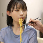 ザーメンがかかった食べ物を、少女が喜んで食べる。